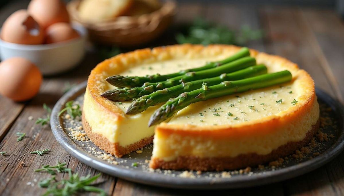 Ce cheesecake aux asperges et au fromage frais est une réinterprétation audacieuse du classique dessert américain. Idéal pour un dîner printanier, il marie avec subtilité la douceur du fromage frais à la finesse des asperges, le tout dans une texture crémeuse et savoureuse.