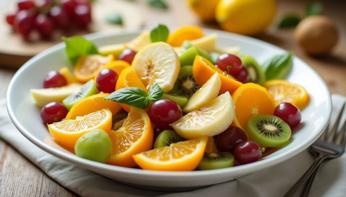 La salade de fruits est un dessert versatile : variez les plaisirs avec des fruits exotiques comme la mangue ou la papaye selon la saison, ou ajoutez des fruits rouges pendant l'été.