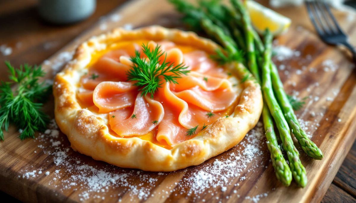 La tarte au saumon et aux asperges est un plat raffiné qui éblouira vos invités lors de votre dîner de Noël. Cette recette, harmonieuse et colorée, allie la délicatesse des asperges à la richesse du saumon, le tout enveloppé dans une pâte brisée légère, pour un résultat savoureux qui séduira tous les gourmets.