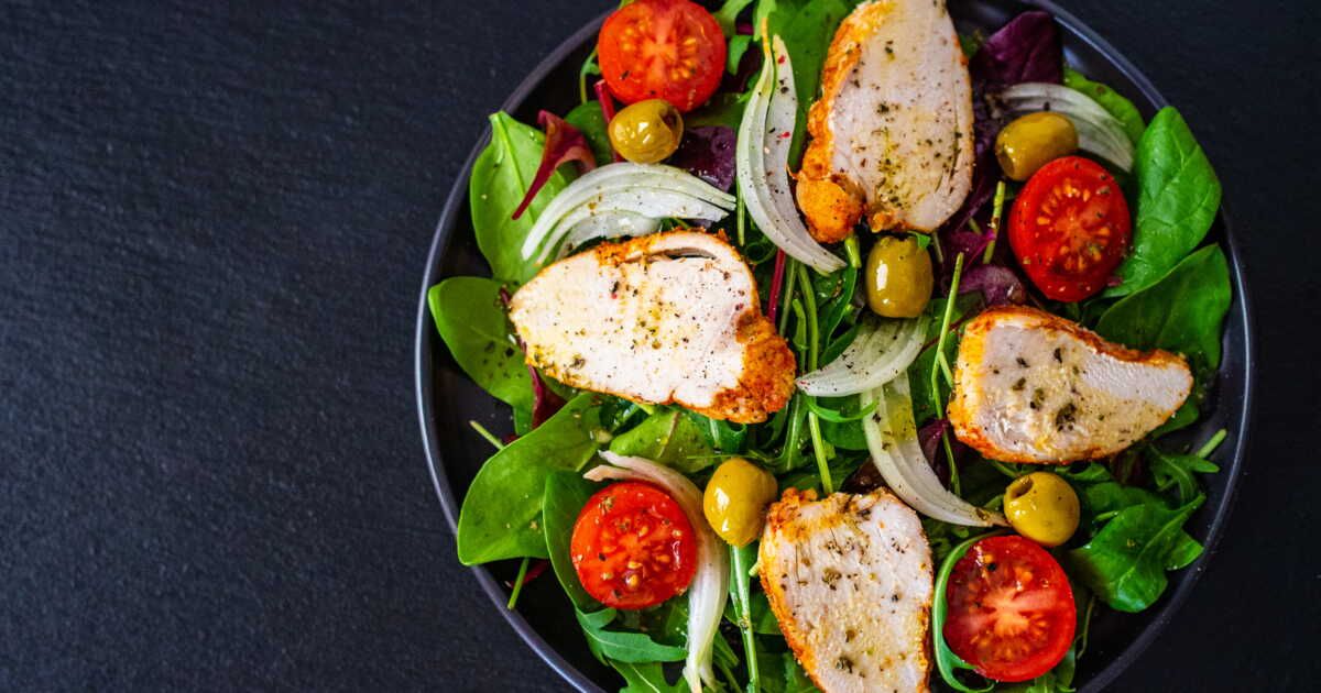 - Salez et poivrez le poulet, puis faites-le griller et découpez-le en tranches.