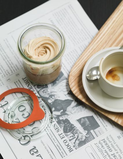 - Montez légèrement la crème Chantilly au café fort. Dans chaque bocal, déposez 50 g de crème, imbibez les biscuits de café et disposez-les par-dessus. Ajoutez 30 g de crème Chantilly café-pastis. Servez immédiatement ou réservez au frais.