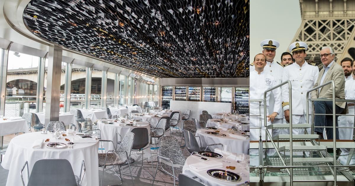 Le concept. - À bord de ce bateau 100% électrique, Alain Ducasse fait rimer écologie et raffinement. Les passagers peuvent savourer un déjeuner ou un dîner tout en naviguant paisiblement sur la Seine. La croisière "Déjeuner sur Seine" offre une vue sur les œuvres emblématiques des musées parisiens. En soirée, l'excursion "Nuit étoilée" invite à découvrir la beauté de la ville illuminée, avec une arrivée au pied de la majestueuse Tour Eiffel. À l'intérieur, les designers Maurizio Galante et Tal Lancman évoquent le mouvement de l'eau à travers un plafond sublimement éclairé par Franck Franjou. Cette expérience offre une escapade où la gastronomie rencontre la beauté de la capitale.