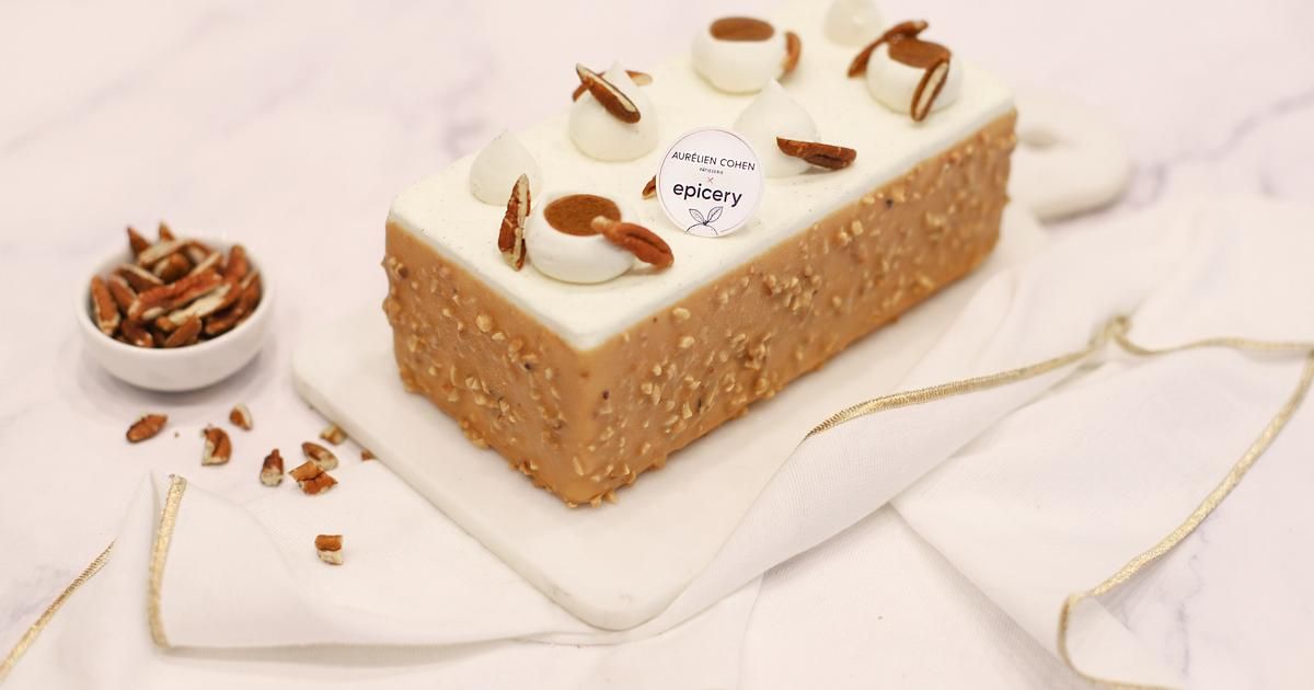Rien de tel qu'une bûche élaborée par un grand pâtissier pour impressionner vos invités et conclure le repas de fête en beauté. Cette année, le célèbre chef pâtissier Aurélien Cohen dévoile une bûche exclusive pour epicery. Inspirée par sa création phare, la tartelette Dulcey-Pécan-Vanille, cette gourmandise se compose d'un cœur praliné de noix de pécan, d'une ganache délicate au chocolat dulcey, d'une mousse à la vanille bio de Madagascar, le tout recouvert d'une enrobage croquant. De quoi ravir les papilles les plus exigeantes !